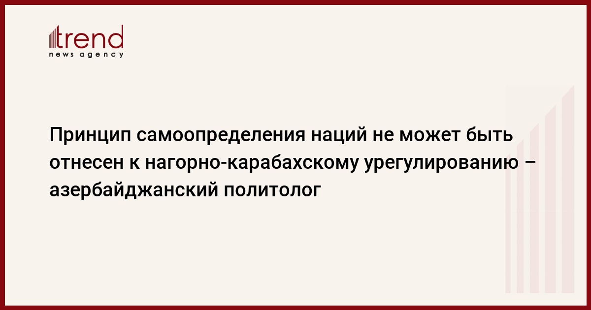 В нагорно-карабахском урегулировании не может применяться "принцип равноправия и самоопределения народов" (так называемый "принцип самоопределения наций"). Об этом сказал в среду Trend директор Центра политических инноваций и технологий, политолог Мубариз Ахмедоглу.
