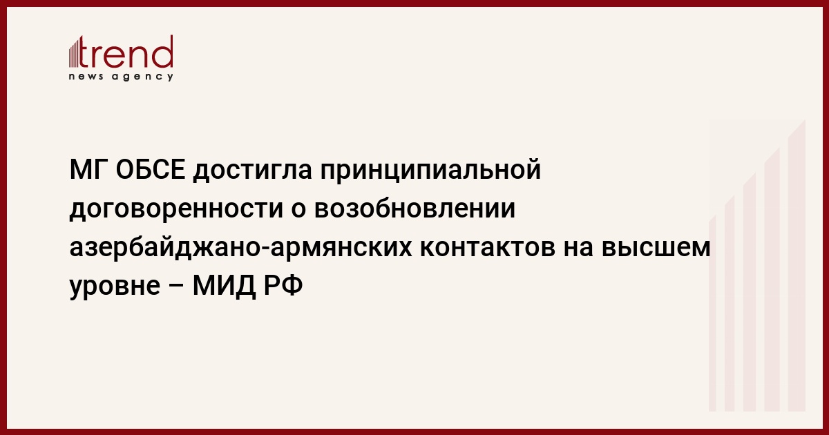 МГ ОБСЕ достигла принципиальной договоренности о возобновлении азербайджано-армянских контактов на высшем уровне, сказано в докладе о результатах и основных направлениях деятельности Министерства иностранных дел Российской Федерации в 2013 году и задачах на среднесрочную перспективу, опубликованном на сайте ведомства.