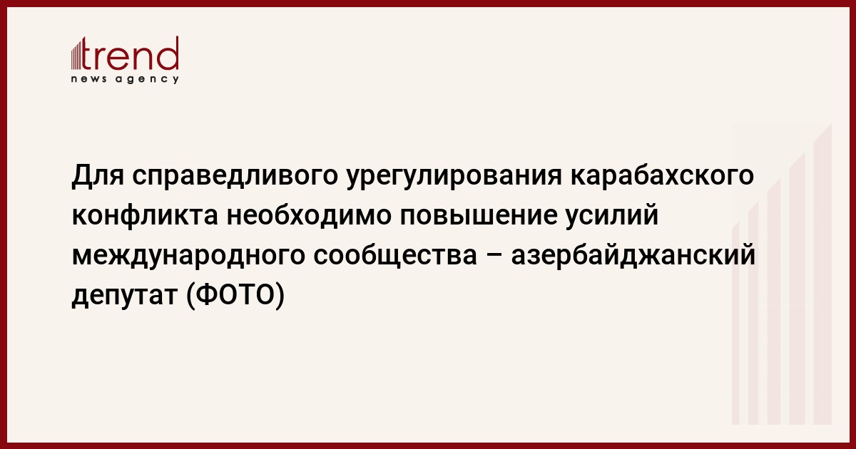 Для справедливого урегулирования армяно-азербайджанского нагорно-карабахского конфликта необходимо увеличение усилий международного сообщества. Об этом сказал председатель Совета государственной поддержки НПО при Президенте Азербайджана, депутат Азай Гулиев на встрече в Берлине с членом комитета Бундестага Германии по внешним связям, вице-президентом ПА ОБСЕ Дорис Барнет, говорится в четверг в сообщении Совета.