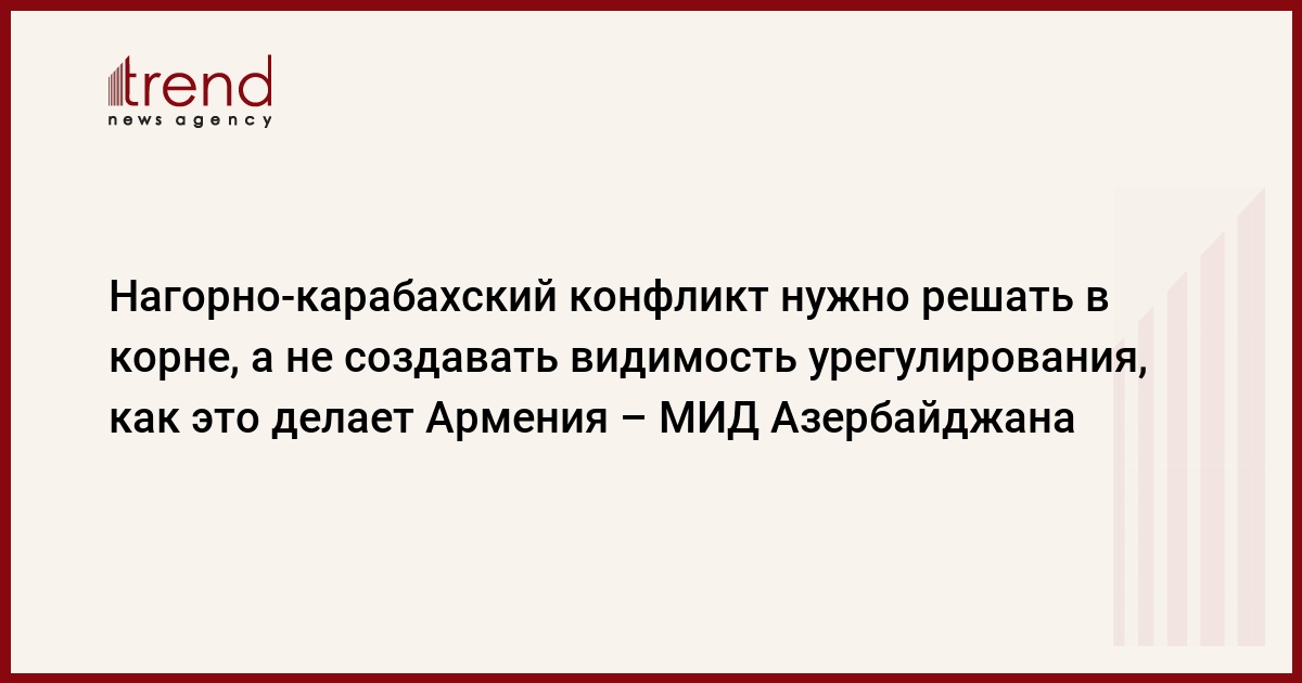 Нагорно-карабахский конфликт нужно решать в корне, а не создавать видимость урегулирования, как это делает Армения, сказал Trend в понедельник официальный представитель МИД Азербайджана Эльман Абдуллаев, комментируя последнее заявление главы МИД Армении Эдварда Налбандяна по вопросу урегулирования нагорно-карабахского конфликта.