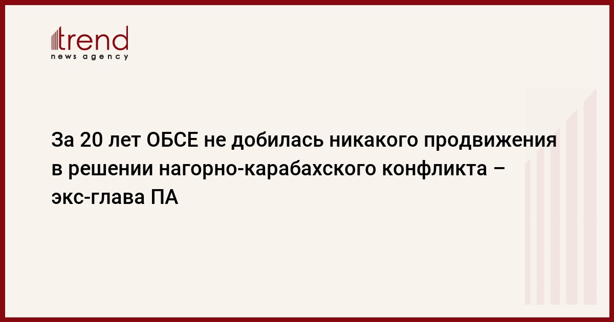 "За прошедшие 20 лет ОБСЕ не добилась никакого важного продвижения в решении нагорно-карабахского конфликта. Самым беспокоящим нас вопросом является вопрос беженцев, поскольку этот вопрос относится к нарушению прав человека", - сказал бывший председатель ПА ОБСЕ.