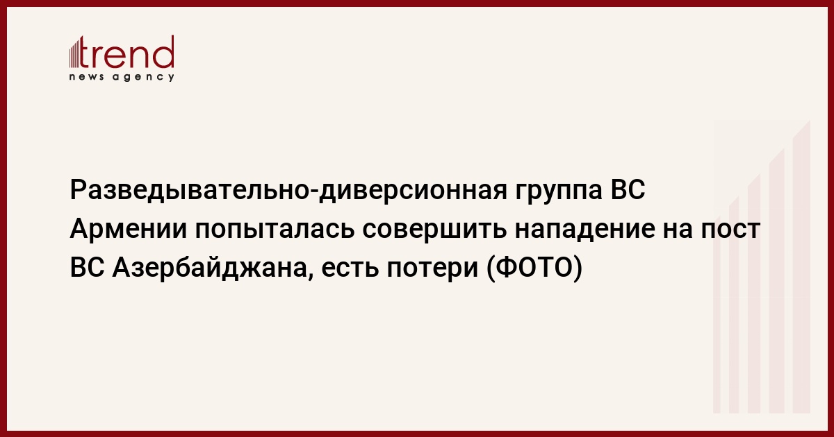Разведывательно-диверсионная группа ВС Армении вновь попыталась совершить нападение на пост ВС Азербайджана, есть потери с обеих сторон, говорится в сообщении пресс-службы минобороны Азербайджана, распространенном в среду.