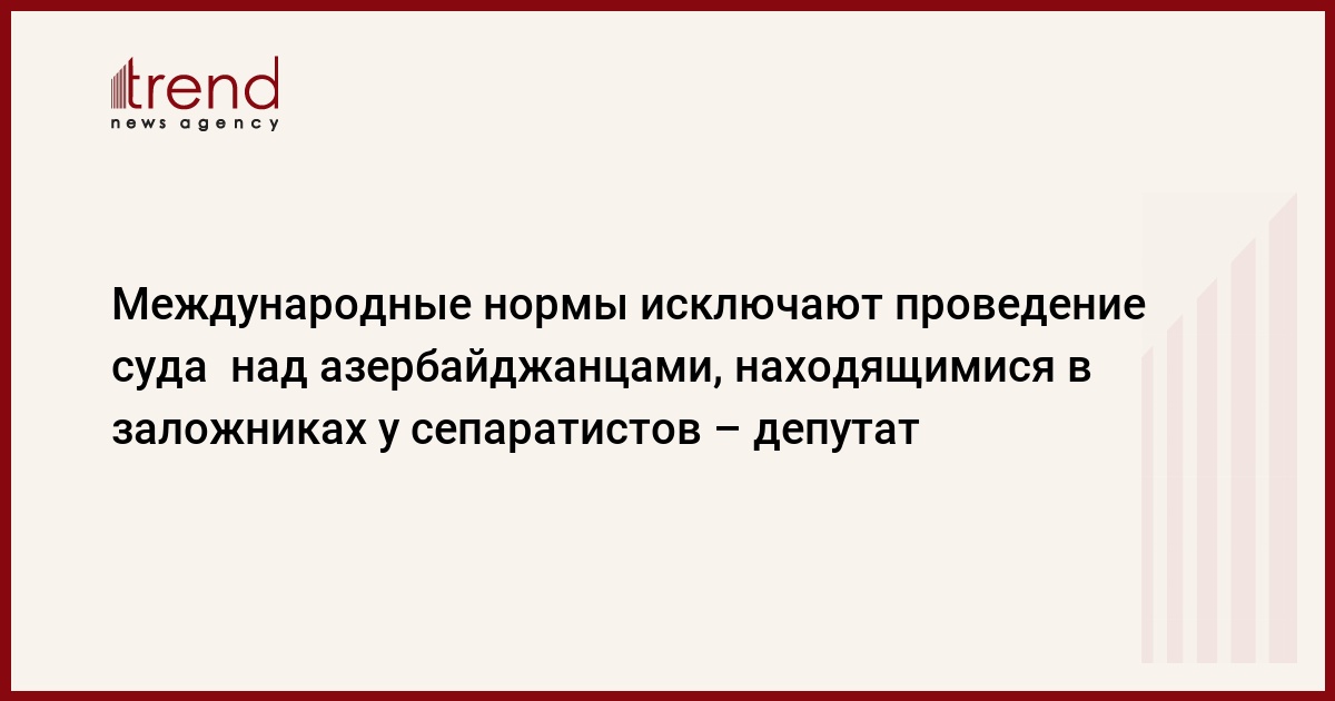 Депутат считает невозможным проведение судебного процесса над находящимися в заложниках гражданами Азербайджана на основании международных норм.