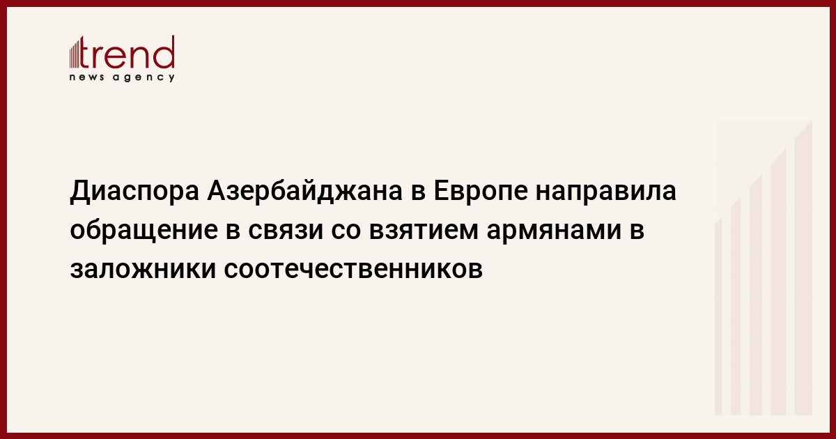 БАКУ /Trend/ - Конгресс азербайджанцев Европы (КАЕ) и Координационный центр азербайджанцев Германии (КЦАГ) направили обращение общественным, политическим и гуманитарным организациям Европы по вопросу взятия армянскими вооруженными силам в заложники граждан Азербайджана Дильгама Аскерова и Шахбаза Гулиева на территории Кельбаджарского района, говорится в сообщении Госкомитета по работе с диаспорой, распространенном в четверг.