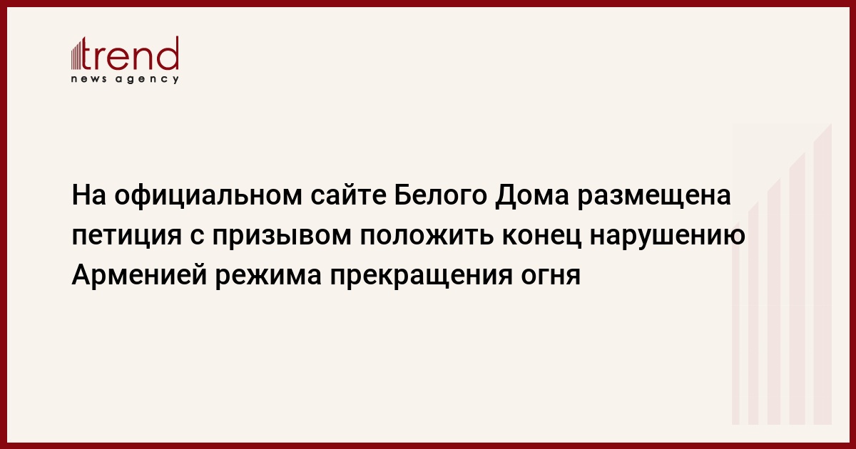 БАКУ /Trend/ - В разделе "We the People" (Мы - народ) официального сайта Белого Дома размещена петиция с призывом положить конец нарушению в последние дни Арменией режима прекращения огня, сообщает АзерТАдж со ссылкой на студентов Азербайджанской академии государственного управления.
