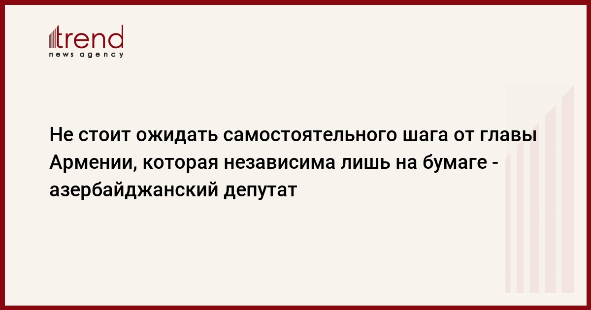 "Армения является государством, которое выполняет чью-то политическую линию в Кавказском регионе. Тогда возникает вопрос: чего можно ждать от главы зависимого государства? Азербайджанская сторона хорошо знает это, но чтобы не говорить международному сообществу о том, что отказывается от встречи, встречается. Если хозяин Армении поручил им предпринять данные шаги, они сделают, если сказал, что не надо, то они проводят данную встречу лишь для того, чтобы бросить пыль в глаза мирового сообщества", - подчеркнул Ибрагимли.