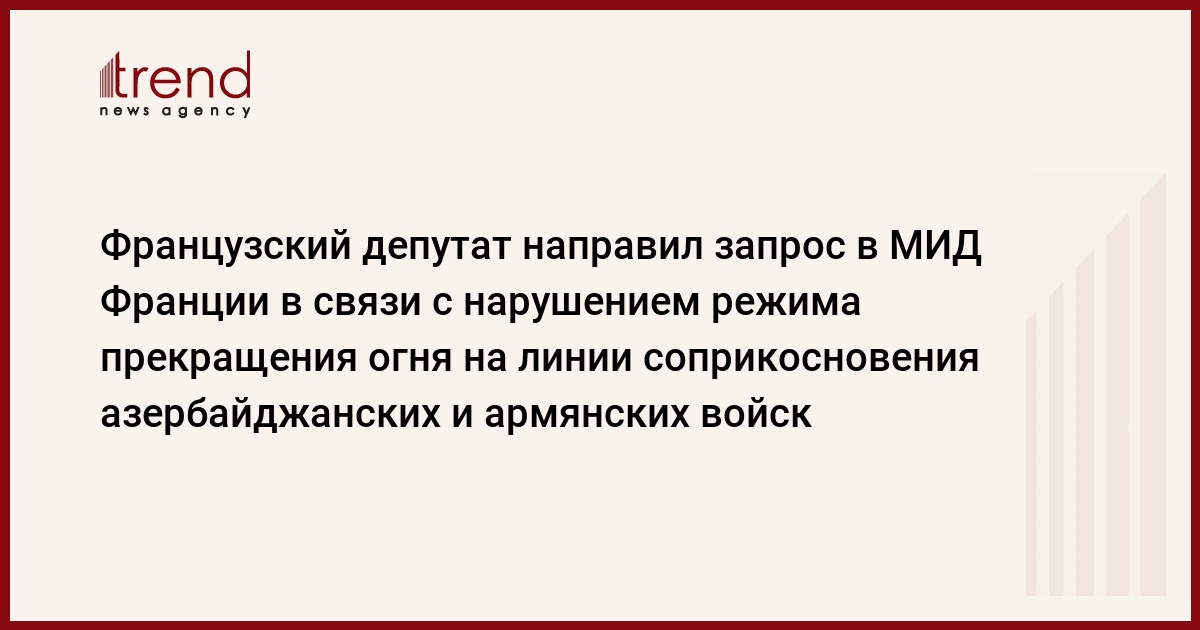 "Я задал вопрос, какова позиция французского правительства в связи с этим и какие шаги планируется предпринять для ускорения процесса урегулирования данного конфликта, как отметил Президент Ильхам Алиев, в рамках международных правил и справедливости, мирным путем и путем переговоров", -сказал парламентарий.