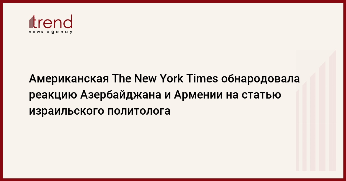 БАКУ /Trend / - Авторитетное американское издание The New York Times обнародовало реакцию Азербайджана и Армении на напечатанную 10 сентября статью израильского политолога Бренды Шаффер "Россия. Захват следующих земель".