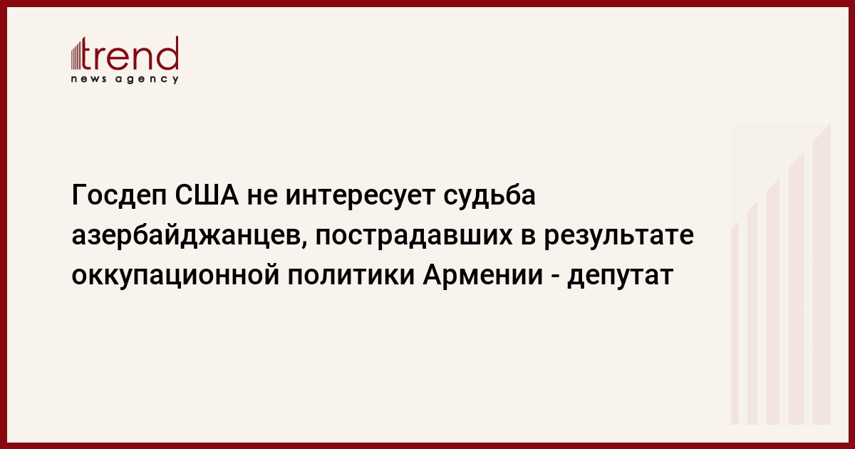 Как отмечает депутат, анализируя все вышесказанное, можно еще раз убедиться в том, что Джона Керри и Госдеп США не интересует судьба азербайджанских граждан, лишенных самых элементарных прав в результате захватнической политики Армении.