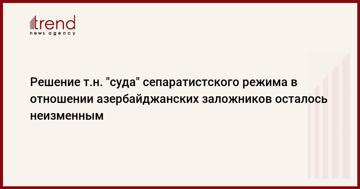 БАКУ /Trend/ -Т.н. "апелляционный суд" сепаратистского режима Нагорного Карабаха оставил без изменений решение т.н. "суда первой инстанции" по делу азербайджанских заложников Дильгама Аскерова и Шахбаза Гулиева. Об этом сообщают во вторник армянские СМИ.