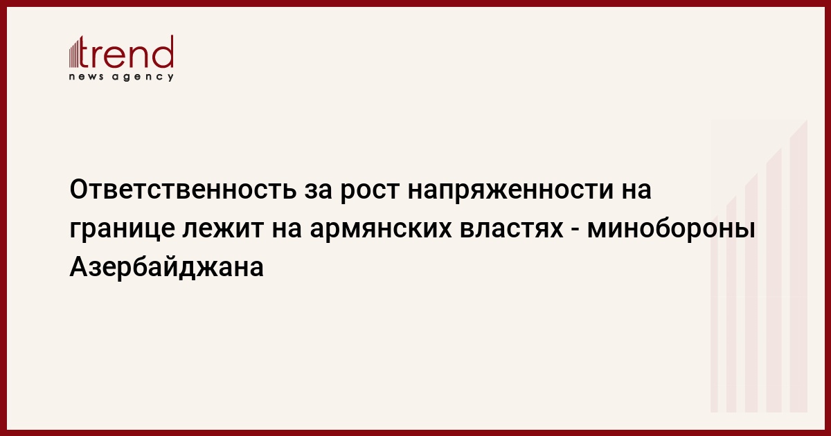 БАКУ /Trend/ - Ответственность за возрастание напряженности на государственной границе Азербайджана и Армении и нанесенный ущерб армянскому гражданскому населению лежит на криминальном военно-политическом режиме Армении, сообщили в пятницу Trend в пресс-службе минобороны Азербайджана.