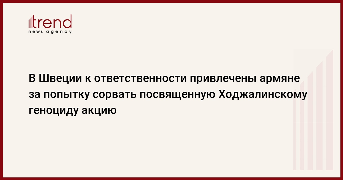 Председатель Конгресса азербайджанцев Швеции Эмиль Мирзоев, в свою очередь, сообщил, что в соответствии со шведским законодательством в отношении армян, пытавшихся спровоцировать столкновение, приняты соответствующие меры, они привлечены к ответственности.