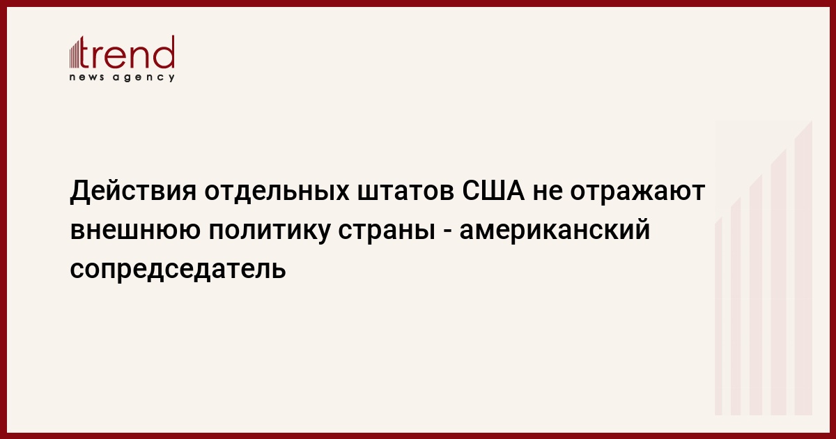 БАКУ /Trend/ - Действия отдельных штатов США не отражают внешнюю политику страны, написал в пятницу в своем микроблоге в соцсети Twitter американский сопредседатель Минской группы ОБСЕ Джеймс Уорлик, комментируя информацию о признании "независимости" оккупированного региона Азербайджана Нагорного Карабаха американским штатом Джорджия.