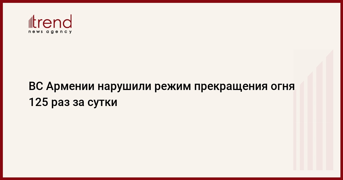 БАКУ /Trend/ - ВС Армении за минувшие сутки нарушили режим прекращения огня на различных направлениях линии соприкосновения азербайджанских и армянских войск 125 раз, говорится в сообщении пресс-службы минобороны Азербайджана, распространенном в среду.