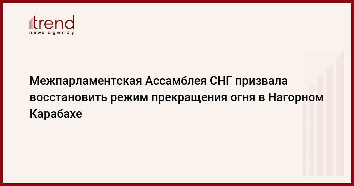 "Межпарламентская Ассамблея государств-участников СНГ выражает серьезную озабоченность в связи с нарушением режима прекращения огня в зоне нагорно-карабахского конфликта и сообщениями о гибели людей ... МПА настойчиво призывает заинтересованные стороны проявить сдержанность и предпринять все возможные действия по восстановлению режима прекращения огня и урегулированию сложившейся ситуации в районе Нагорного Карабаха", - говорится в заявлении председателя Совета МПА, спикера Совета Федерации Валентины Матвиенко.