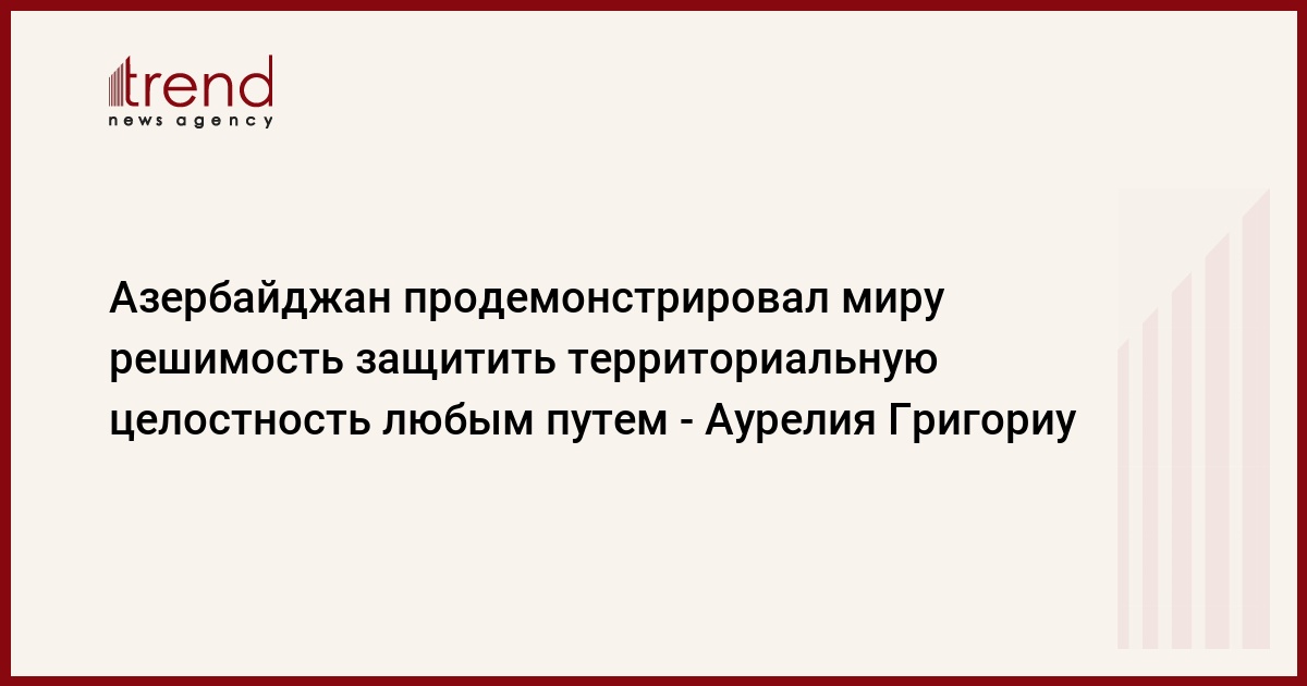 "Азербайджан продемонстрировал решимость защитить свою территориальную целостность всеми путями в рамках международного права", - сказала Григориу.