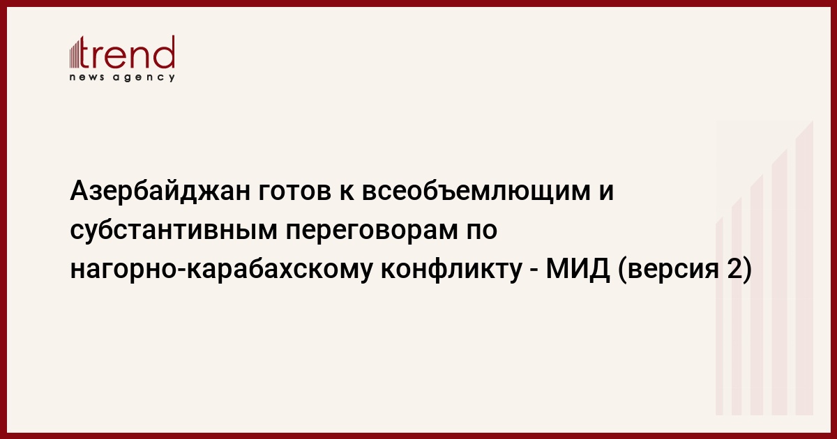 БАКУ /Trend/ - Азербайджан готов к всеобъемлющим и субстантивным переговорам по урегулированию нагорно-карабахского конфликта.