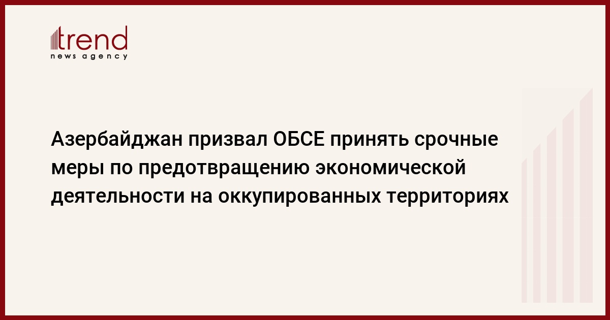 «В свете вышеизложенного мы вновь призываем участников ОБСЕ принять срочные и эффективные меры по предотвращению любой деятельности физических и юридических лиц стран-участниц на оккупированных азербайджанских территориях», - говорится в заявлении постпредства Азербайджана.