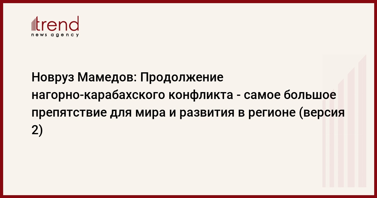 БАКУ /Trend/ - Продолжение нагорно-карабахского конфликта является самым большим препятствием для мира и развития в регионе.