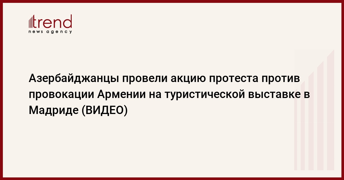 БАКУ/ Trend/ - Азербайджанцы, проживающие в Испании, провели акцию протеста против стенда, пропагандирующего сепаратистский режим в Нагорном Карабахе на международной туристической выставке "Fitur-2017" в Мадриде.