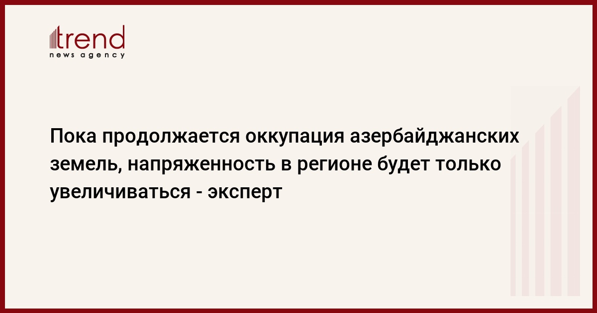 БАКУ /Trend/ - Пока продолжается оккупация азербайджанских земель, напряженность в регионе будет сохраняться и даже увеличиваться, сказал во вторник Trend политолог, доцент факультета международных отношений Университета экономики и технологий ТОББ (Анкара) Тогрул Исмаил.