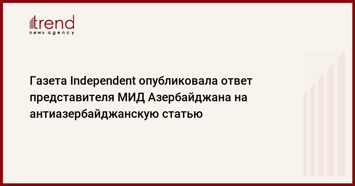Ранее МИД Азербайджана распространил заявление, в котором выражается сожаление, что газета Independent разместила статью, которая носит характер fakenews и пропаганды.