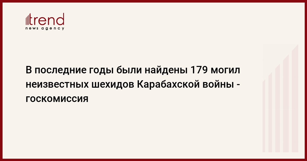 БАКУ /Trend/ - Во время проведенных в последние годы на территории Азербайджана мониторингов, в частности в районах и на территориях, где шли интенсивные бои во время армяно-азербайджанского нагорно-карабахского конфликта, были обнаружены и зарегистрированы 179 могил неизвестных военнослужащих.