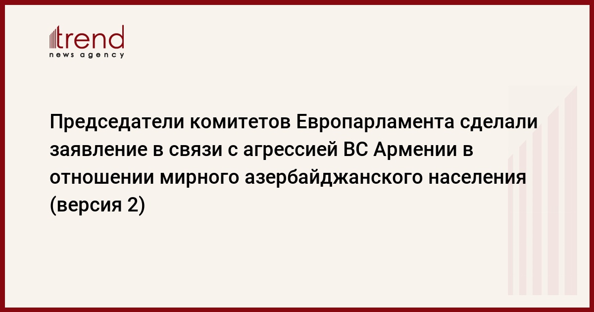 БАКУ/ Trend/ - Председатели комитетов Европарламента сделали заявление в связи с агрессией вооруженных сил Армении в отношении мирного населения Азербайджана.