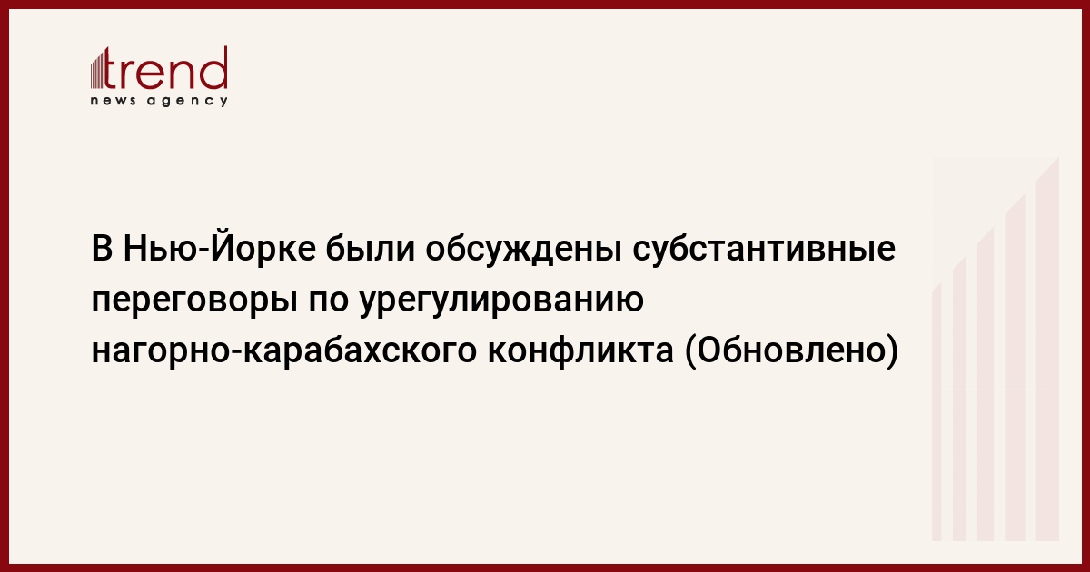21:21 (GMT+4) БАКУ /Trend/ - Главы МИД Азербайджана и Армении Эльмар Мамедъяров и Эдвард Налбандян проводят встречу в Нью-Йорке с участием сопредседателей МГ ОБСЕ. Об этом в субботу в своем микроблоге в Twitter написал официальный представитель МИД Азербайджана Хикмет Гаджиев.