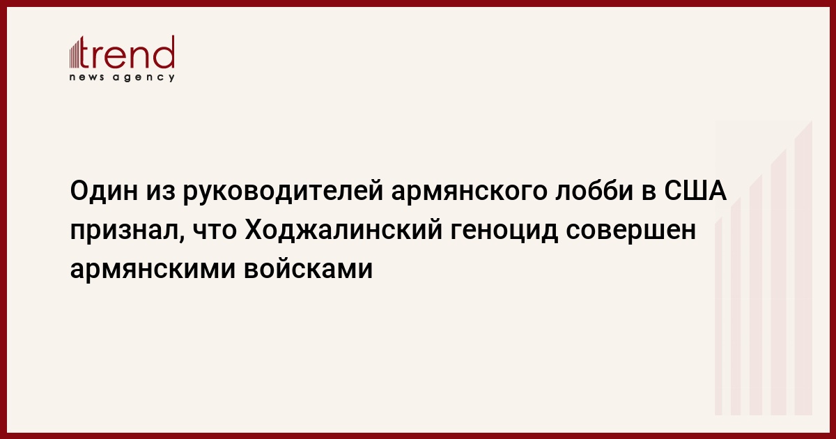 Один из руководителей армянского лобби в США, фактически признав убийство азербайджанцев в Ходжалы армянскими вооруженными силами, использовал для "оправдания" этого преступления смехотворные аргументы. Ведь как и чем можно оправдать убийства мирных людей - женщин, маленьких детей, стариков?!