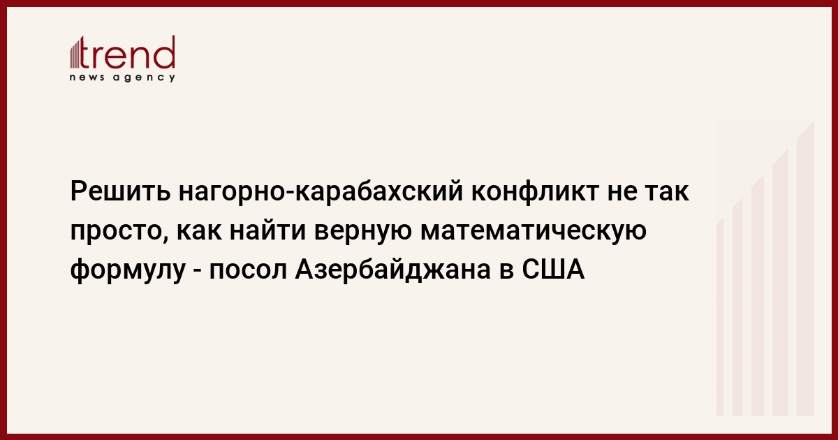 «Любое мирное решение для того, чтобы быть продолжительным, должно принимать во внимание не только неустойчивый статус-кво, но и долгосрочные перспективы региона. Для азербайджанцев это означает признание их сильной привязанности к Карабаху, а также возвращение изгнанных людей в свои дома. Для армян же Карабаха это выражается в стремлении находиться в безопасности, а также в возможности самоуправления», – написал посол.
