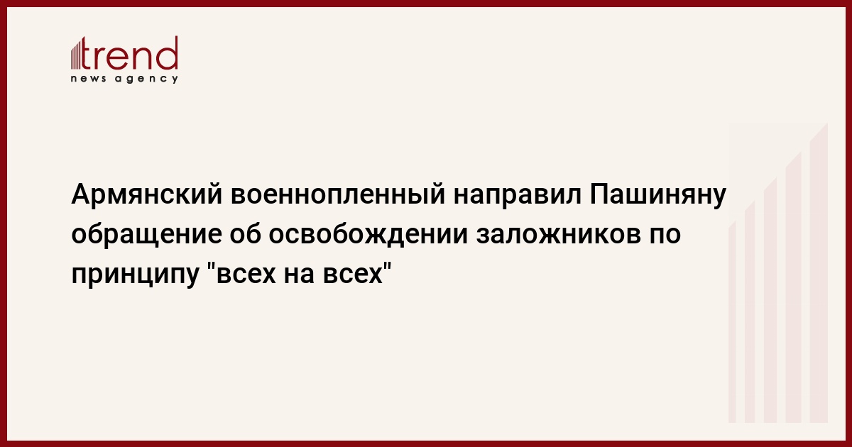 БАКУ /Trend/ - Армянский военнопленный направил обращение и.о. обязанности премьер-министра Армении Николу Пашиняну об освобождении военнопленных и заложников по принципу «всех на всех».