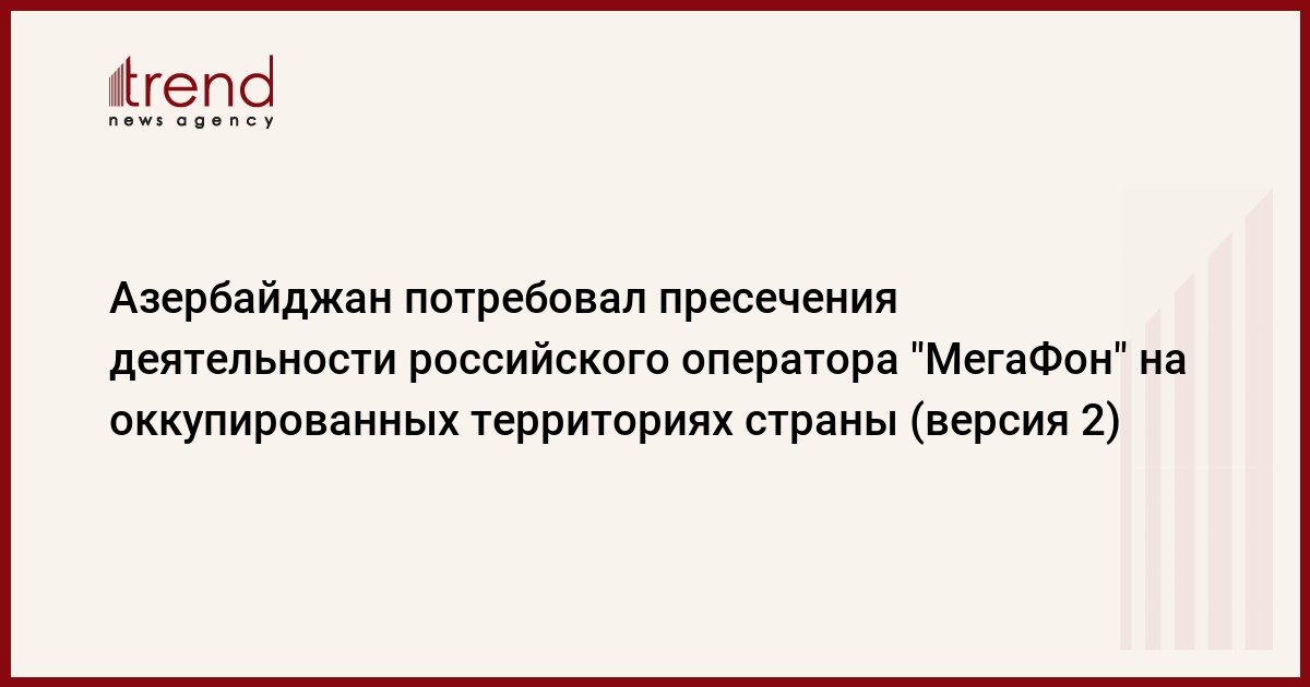 Российский министр отметил, что оператор "МегаФон" не осуществляет какой-либо деятельности на оккупированных территориях Азербайджана, в связи с чем азербайджанскому ведомству будет направлена официальная информация.
