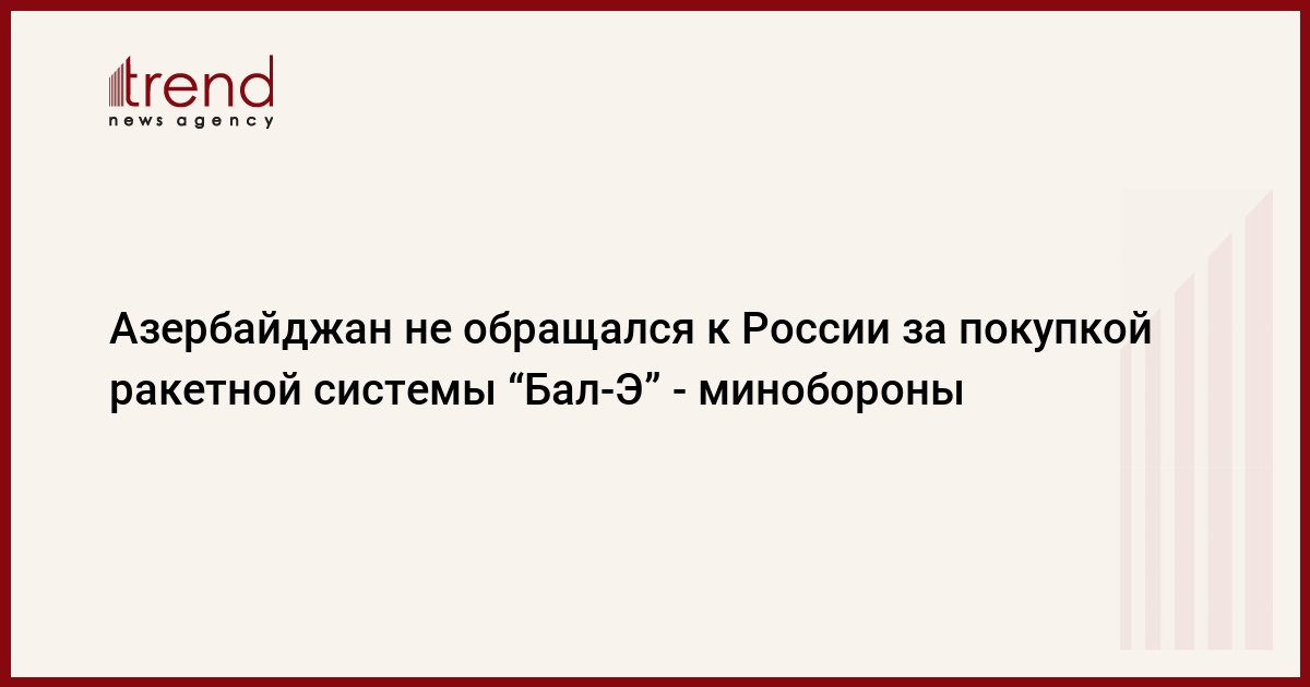 БАКУ /Trend/ - Азербайджан не обращался к России за покупкой ракетной системы “Бал-Э”, сообщили в четверг Trend в министерстве обороны, комментируя распространившуюся в последнее время информацию о том, что Азербайджан якобы заинтересован в покупке данной ракетной системы, однако российская сторона не считает продажу целесообразной.