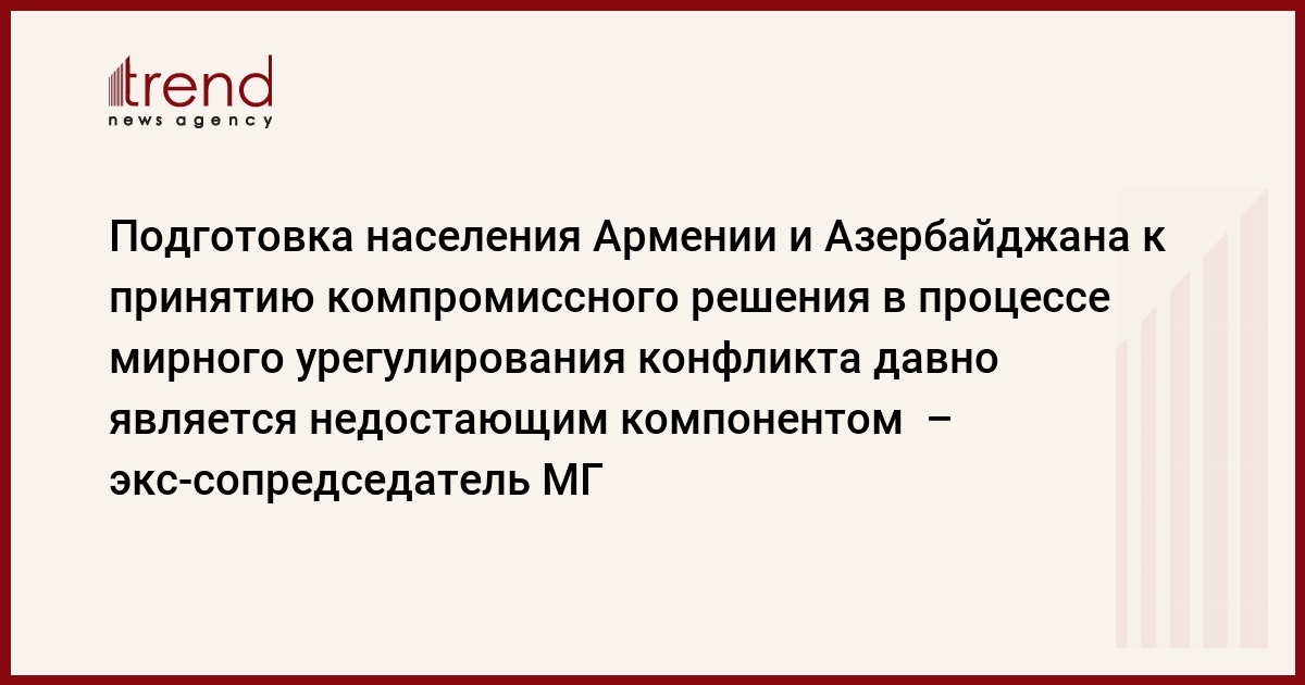 БАКУ /Trend/ - Подготовка населения Армении и Азербайджана к принятию любого компромиссного решения в процессе мирного урегулирования нагорно-карабахского конфликта уже давно является недостающим компонентом.