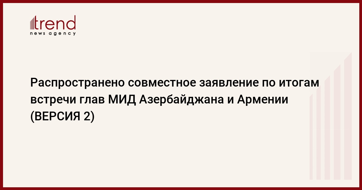 БАКУ/Trend/ - Распространено совместное заявление глав МИД Азербайджана, Армении и России, а также сопредседателей Минской группы ОБСЕ, сообщает Trend со ссылкой на ОБСЕ.