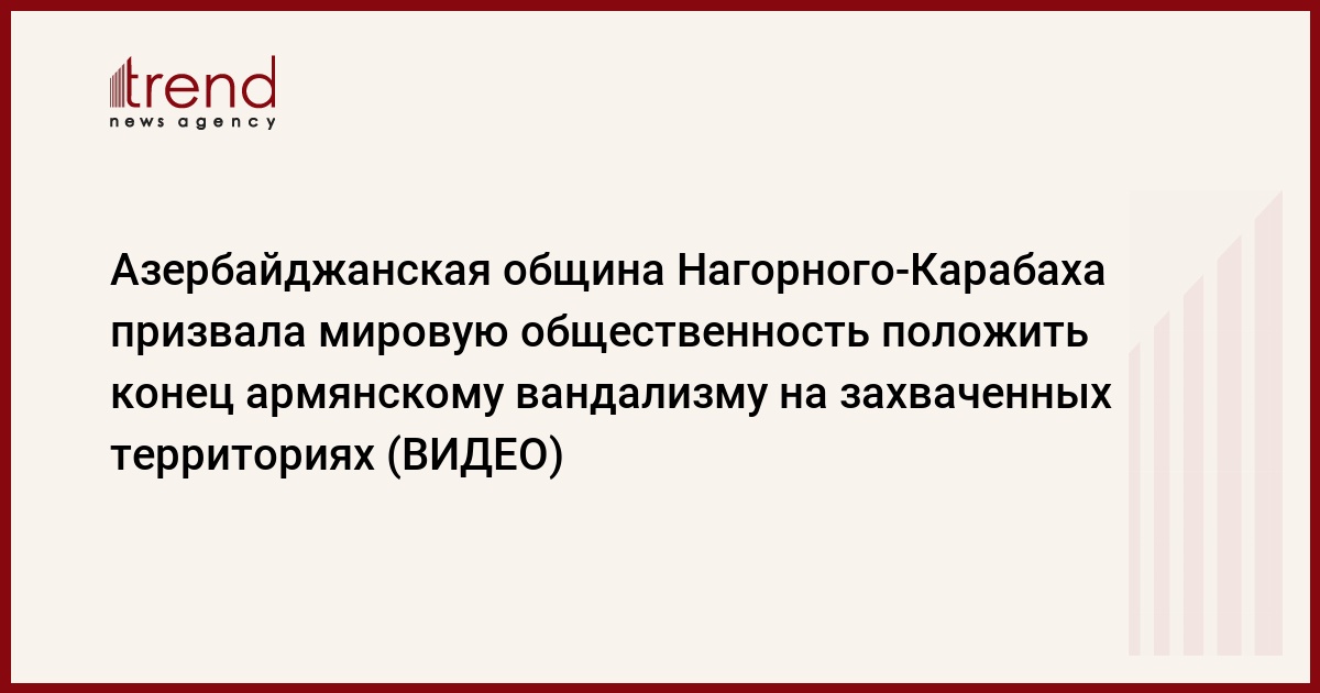 БАКУ /Trend/ - Общественное объединение «Азербайджанская община Нагорно-карабахского региона Азербайджана» обратилось с очередным призывом к международной общественности, относительно исторического, культурного и религиозного наследия, уничтожаемого на оккупированных Арменией азербайджанских территориях, сообщает в понедельник Trend со ссылкой на Общественное объединение.