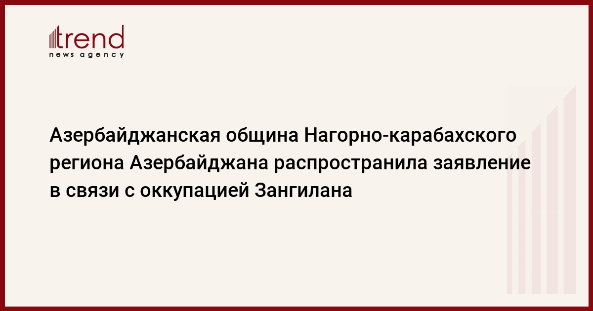 БАКУ/Trend/ - Общественное объединение «Азербайджанская община Нагорно-карабахского региона Азербайджана» распространило заявление в связи с 26-й годовщиной оккупации Зангиланского района вооруженными силами Армении, сообщает во вторник Trend.