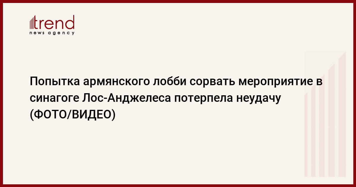 БАКУ /Trend/ - В синагоге Нессах в Лос-Анджелесе, одной из крупнейших еврейских синагог в США, состоялось мероприятие, посвященное разоблачению политики оккупации и этнической чистки Армении против Азербайджана.