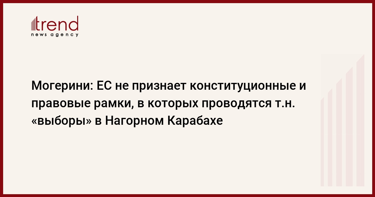 Как сообщает в пятницу Trend, об этом говорится в ответе Верховного представителя Европейского союза (ЕС) по иностранным делам и политике безопасности Федерики Могерини на вопрос, озвученный членом Европарламента от Болгарии Илхана Кючюка по поводу так называемых «выборов», проведенных на оккупированных Арменией территориях Азербайджана в сентябре этого года.