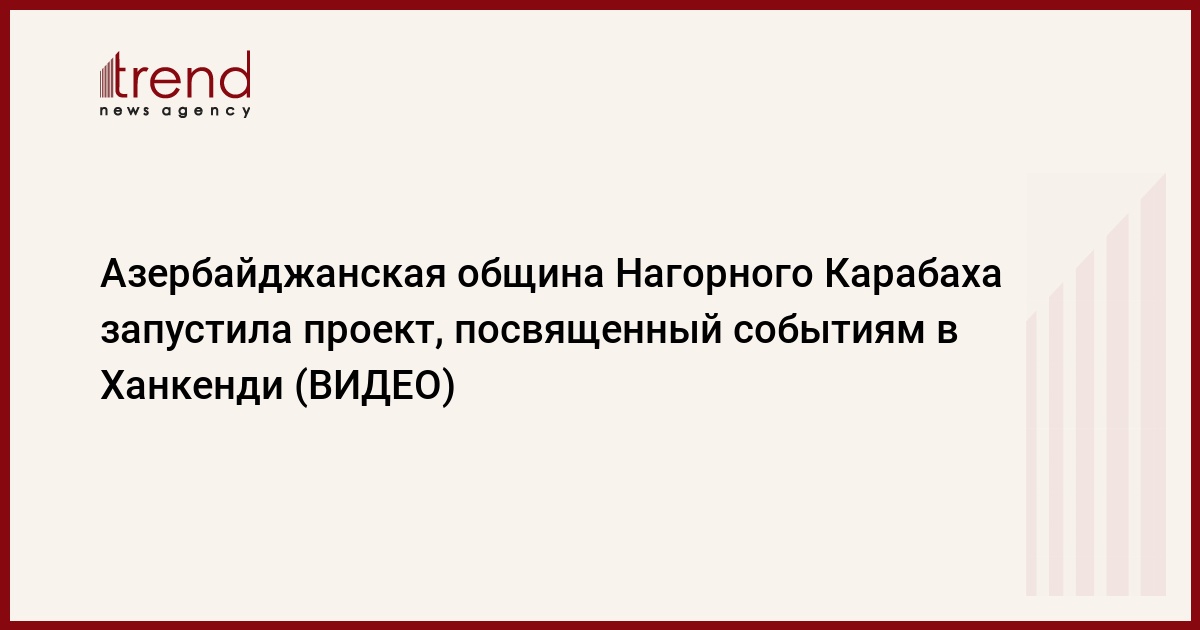 БАКУ /Trend/ - Азербайджанская община Нагорно-Карабахского региона запустила проект "Резня в Ханкенди". Целью проекта является привлечение общественного внимания к подготовленным органами спецслужб Армении с начала 1988 года и начатым 18 сентября того же года террористическим актам против азербайджанцев-жителей Ханкенди.