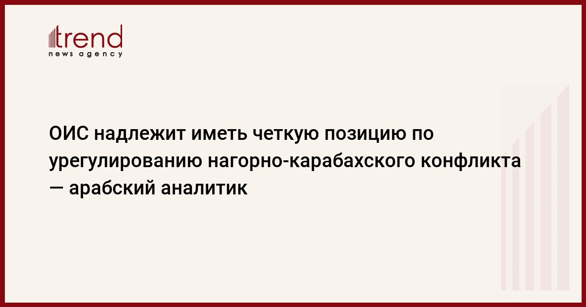БАКУ /Trend/ - Организации исламского сотрудничества (ОИС) необходимо иметь четкую позицию в урегулировании нагорно-карабахского конфликта, сказал Trend известный арабский писатель и аналитик Камаль аль-Халбави.