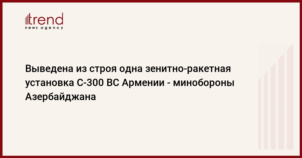 Вчера во время боев в селе Шушакенд Ходжалинского района была выведена из строя одна зенитно-ракетная установка С-300 ВС Армении.