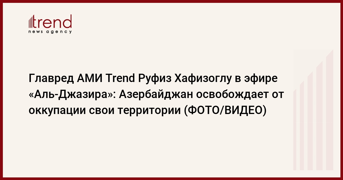 В ходе очередного выступления в эфире телеканала «Аль-Джазира» главный редактор АМИ Trend Руфиз Хафизоглу проинформировал арабскую общественность о последних событиях в Нагорном Карабахе.