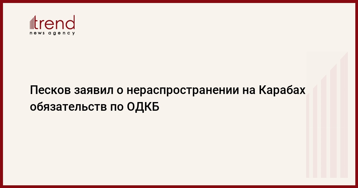Обязательства России в рамках Организации договора о коллективной безопасности (ОДКБ) в отношении Армении не распространяются на Нагорный Карабах, заявил журналистам пресс-секретарь президента России Дмитрий Песков, сообщает Trend со ссылкой на Ведомости.