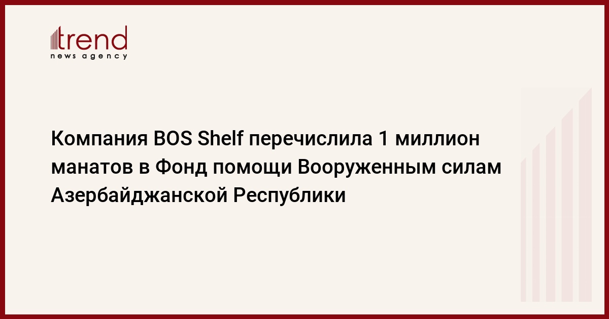 Компания BOS Shelf с целью оказания поддержки Национальной армии, сражающейся за территориальную целостность нашей страны, перечислила 1 миллион манатов в Фонд помощи Вооруженным силам Азербайджанской Республики, сообщает в пятницу Trend.