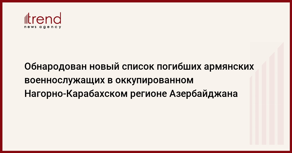 БАКУ/Trend/ - Обнародован список погибших армянских военнослужащих в оккупированном Нагорно-Карабахском регионе Азербайджана по данным на 16 октября, сообщает Trend со ссылкой на армянские СМИ.