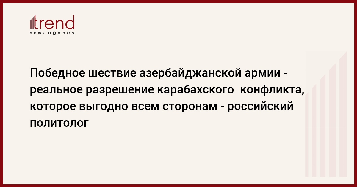 "Одновременно открывается и возможность для России развивать экономические и гуманитарные проекты на Южном Кавказе. Для Армении даже появится возможность наладить отношения с Турцией. К тому же армянским политикам придется не кричать о каких-то выдуманных бедах армянского народа, а мыслить более прагматично. От этого, безусловно, выиграет простой армянский народ. То есть победное шествие азербайджанской армии это реальное разрешение конфликта и выгодно абсолютно всем сторонам. Включая и Армению, что важно подчеркнуть", - сказал политолог.