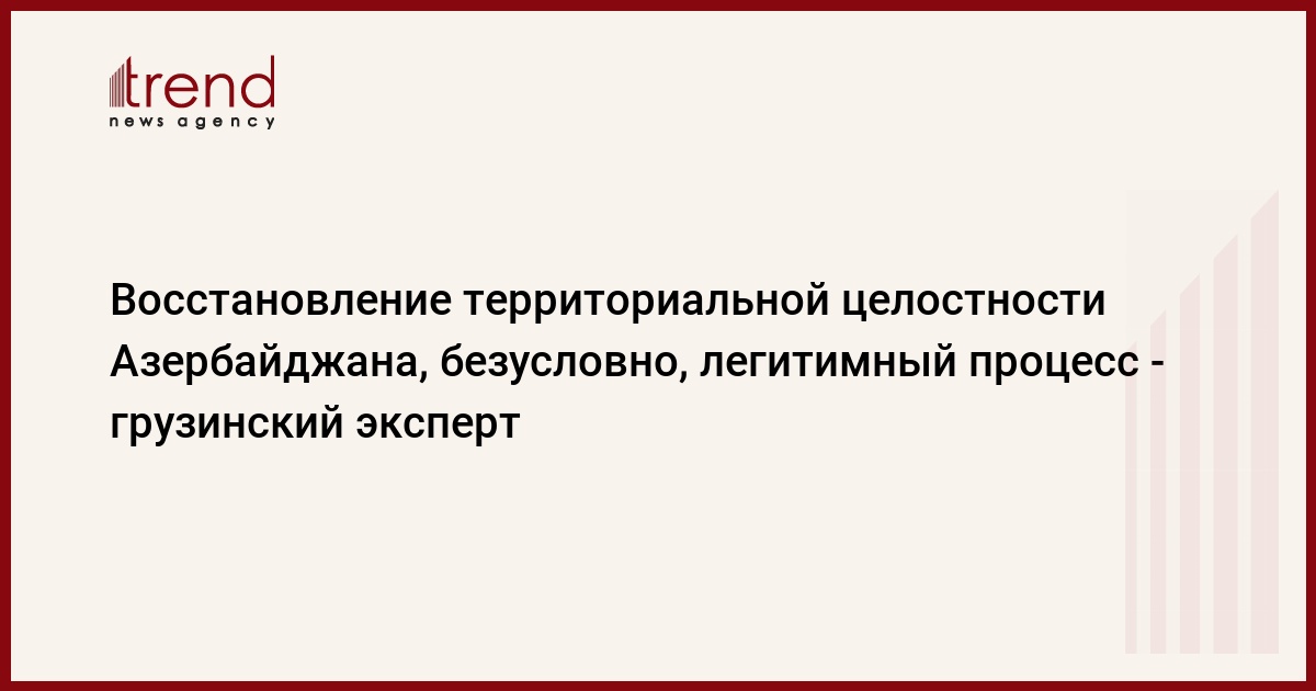 БАКУ /Trend/ - Восстановление территориальной целостности Азербайджана безусловно легитимный процесс, сказал Trend эксперт по международным отношениям, бывший депутат парламента Грузии Ираклий Гогава.