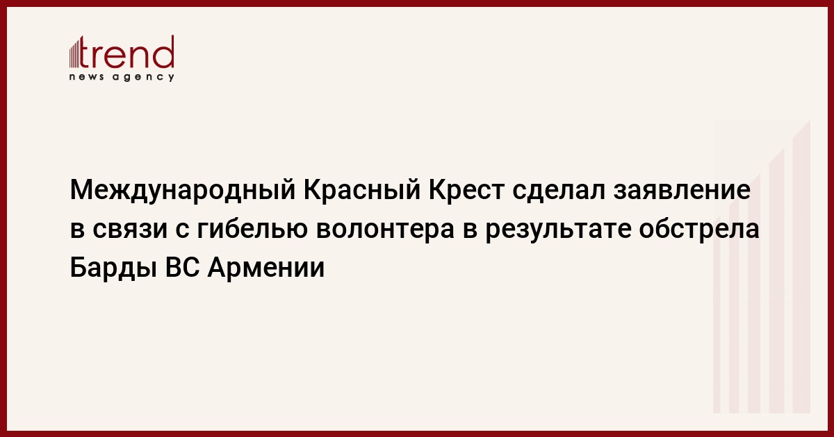 БАКУ /Trend/ - В ходе обстрела азербайджанского города Барда ВС Армении погиб волонтер Азербайджанского общества Международное движения Красного Креста и Красного Полумесяца, отец двоих детей, сообщает Trend со ссылкой на Международный Красный Крест.